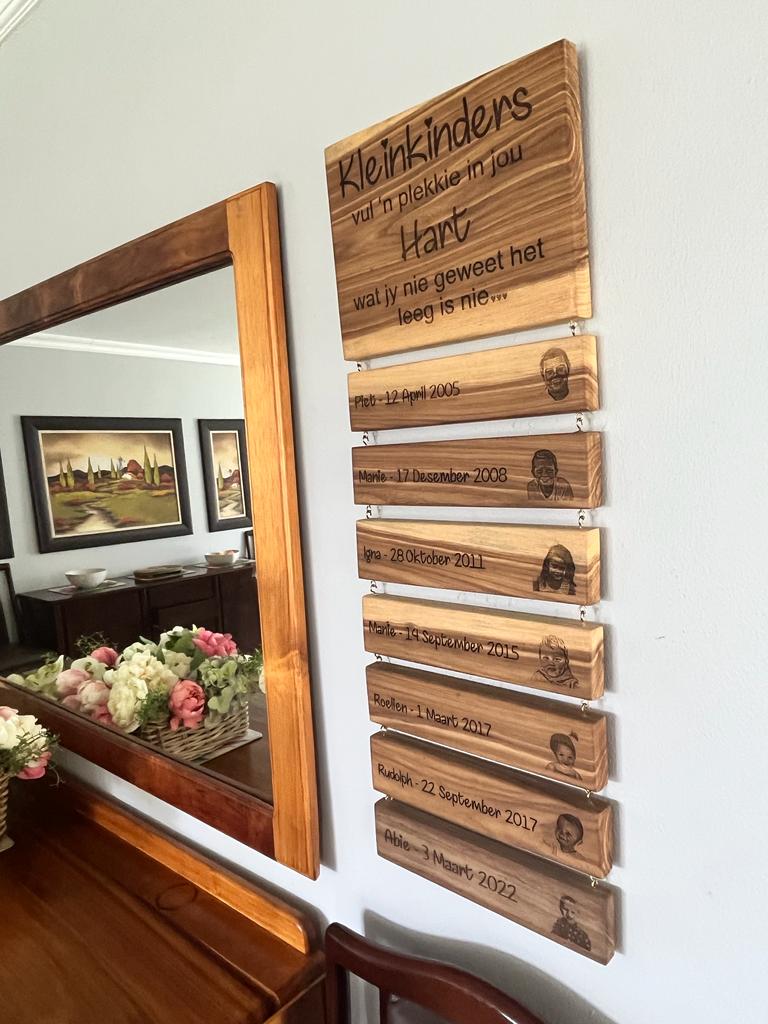 Engraved Kiaat Display Board for Grandma. Order your Large Board (300x250mm) for R400 and add to it smaller boards (300x75mm) for R150 each.